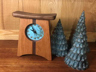 Prairie Mantel Deluxe Handcrafted Wooden Clock in Cherry & Copper with Walnut Accents